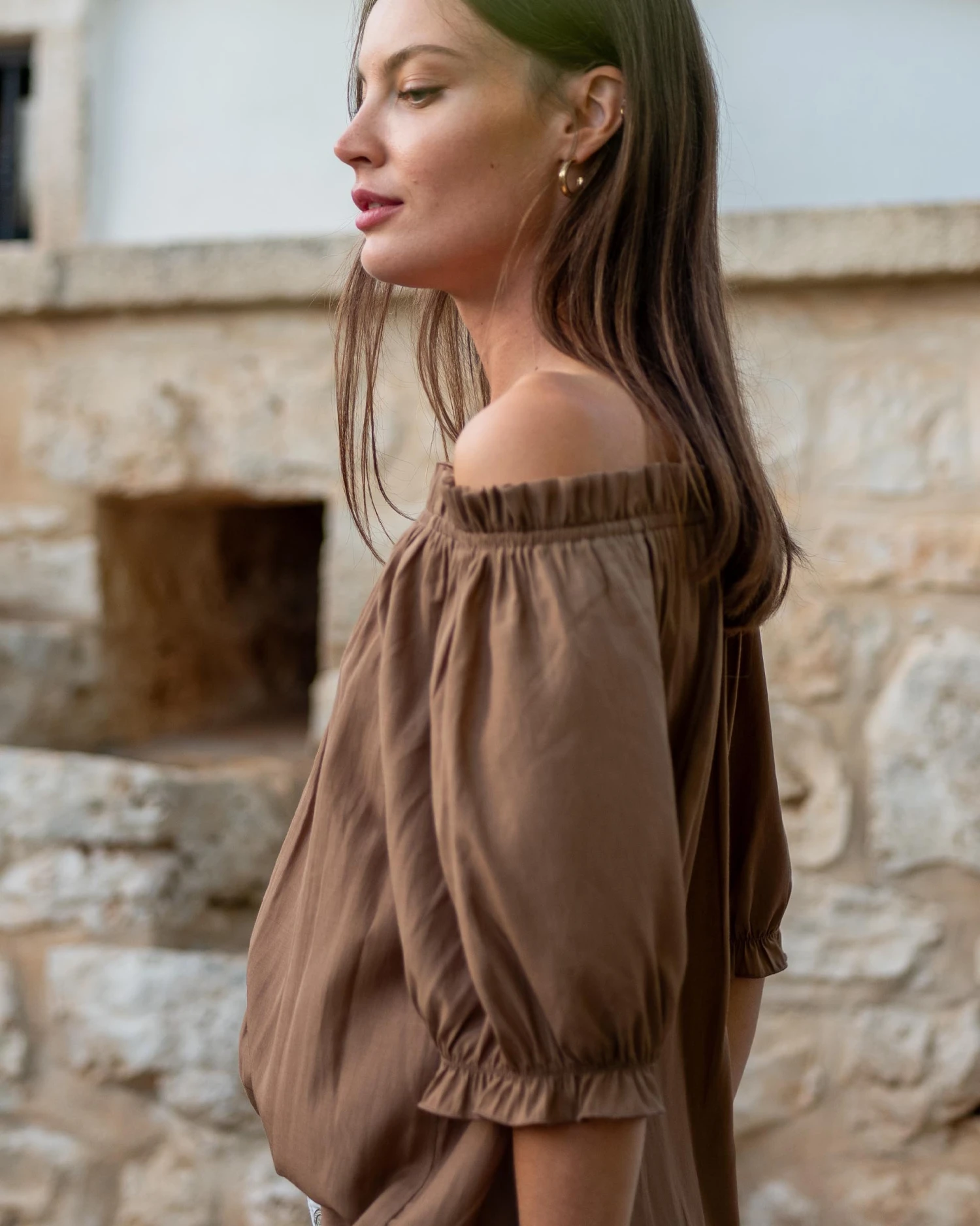 The top you’ve been looking for – flirty, fun, silky, fem-fem. Featuring a playful ruffle neckline in a relaxed yet flattering silhouette, the Ibiza Blouse captures carefree elegance. Based on our best selling Tulum top, the Ibiza has a more modern and clean design with the same amazing material. Made to pair with denim, shorts, or the matching Ibiza Pants as a stylish ensemble, this top can be worn on the shoulders or off for a slightly more exotic look.