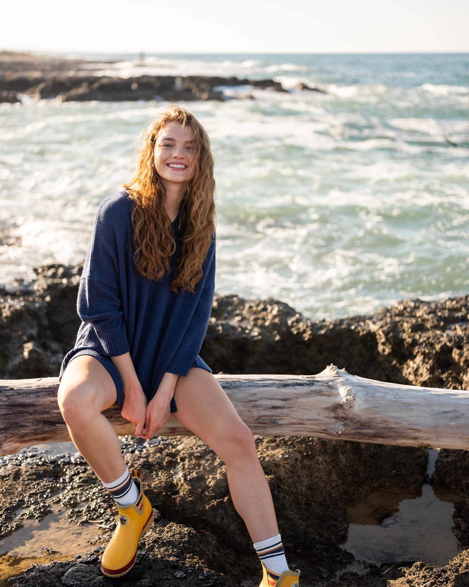 The Montauk – as chic as the name suggests. With a deep ribbed v-neckline and wider bell-like sleeve, this East Coast style is crossed with a West Coast cool vibe. This sweater comes in great colors to pair with your favorite denim and sneakers or styled with a pair of shorts or skirt. Classic and chic – two great words to describe your next long time love.