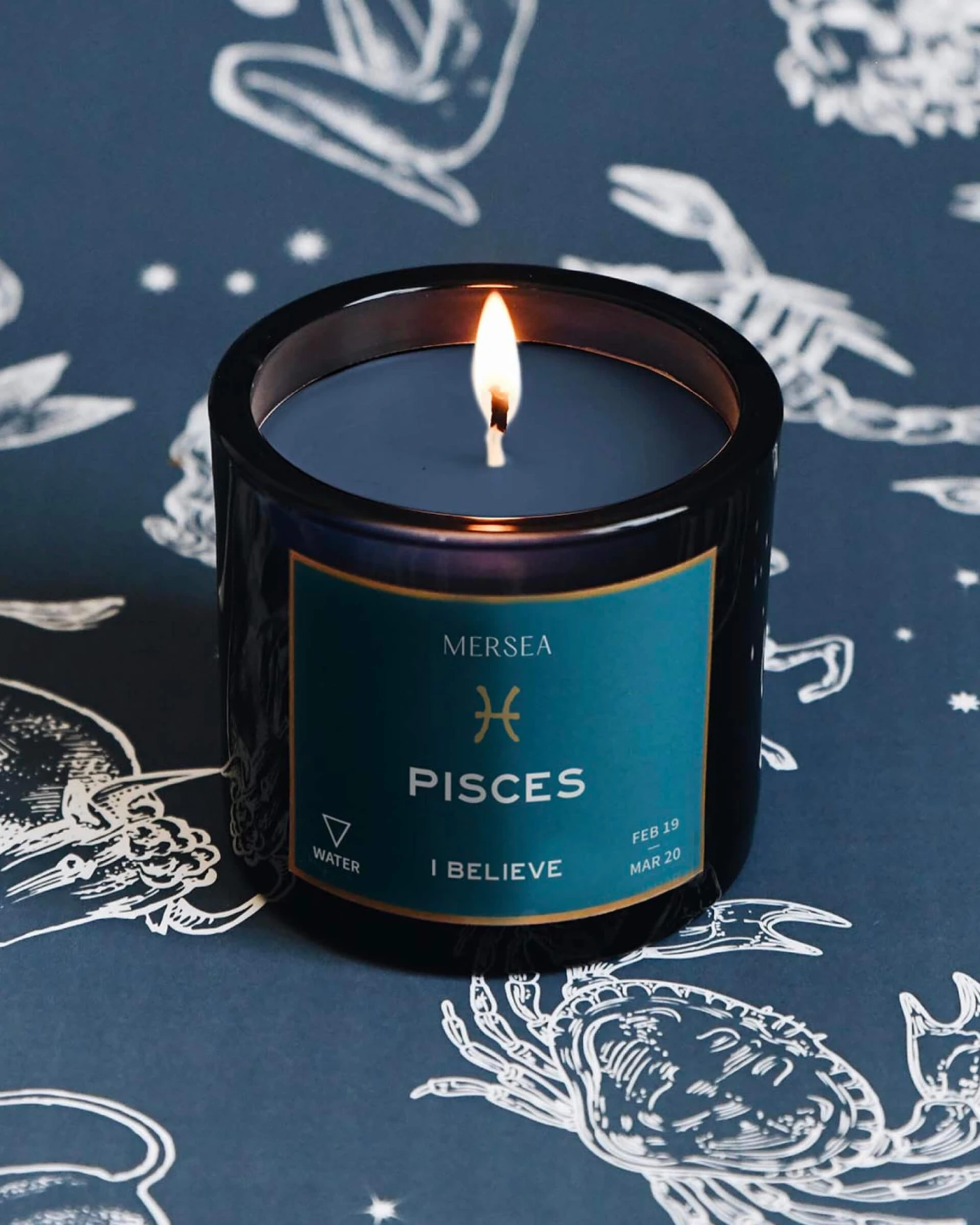 Each zodiac sign is represented by an element. Pisces’ element is Water. Like the sea itself, this scent has an ebb and flow. The sea salt builds a deep serenity while the musky tones add natural movement wherever you are burning it. There is a strong sense of tranquility, but don’t be fooled, its aroma is as strong as water signs can be. We love the mixture of intensity and flow that this sign and scent offer. Rejuvenate your senses, Water signs—this Zodiac Candle is sure to change your environment.