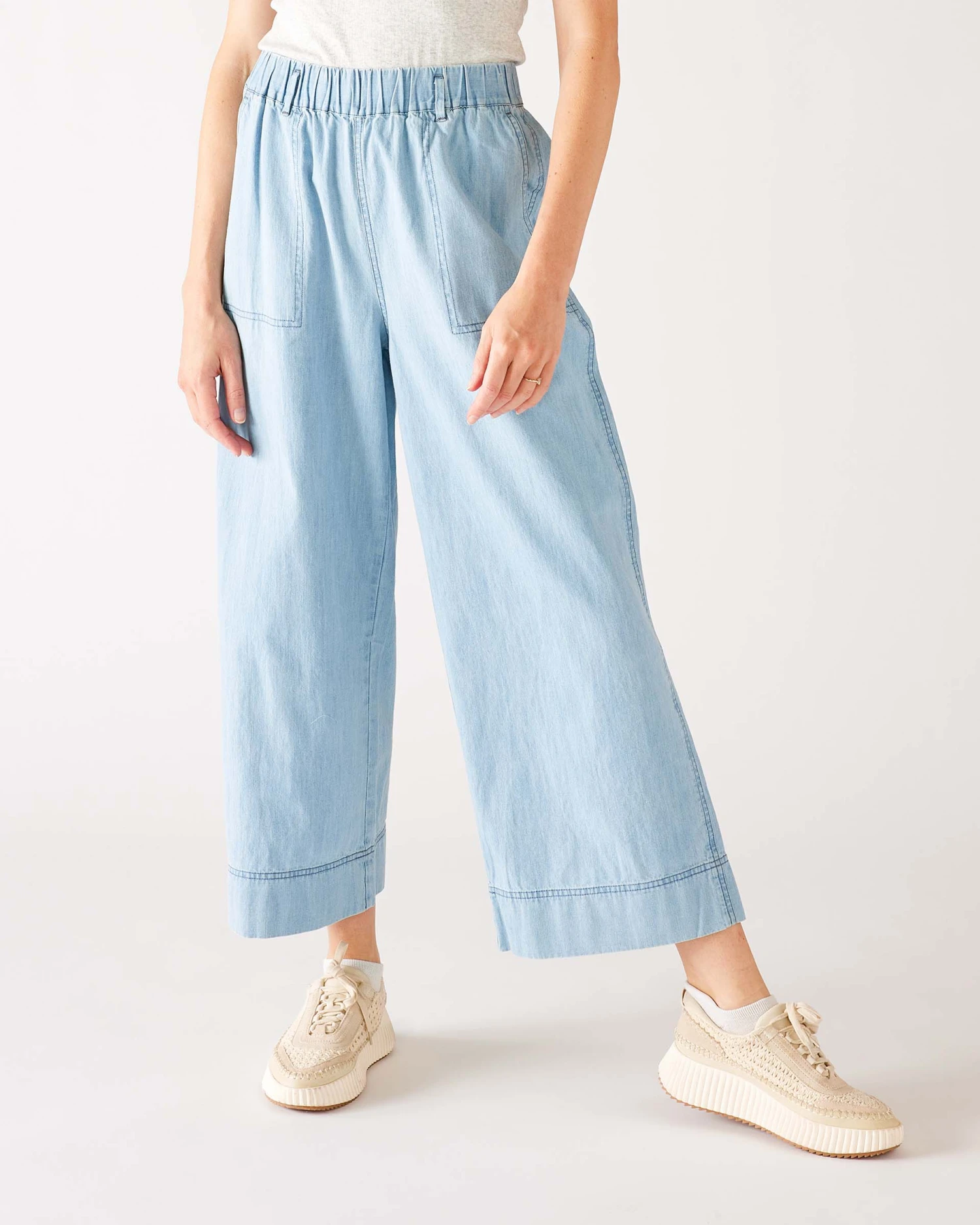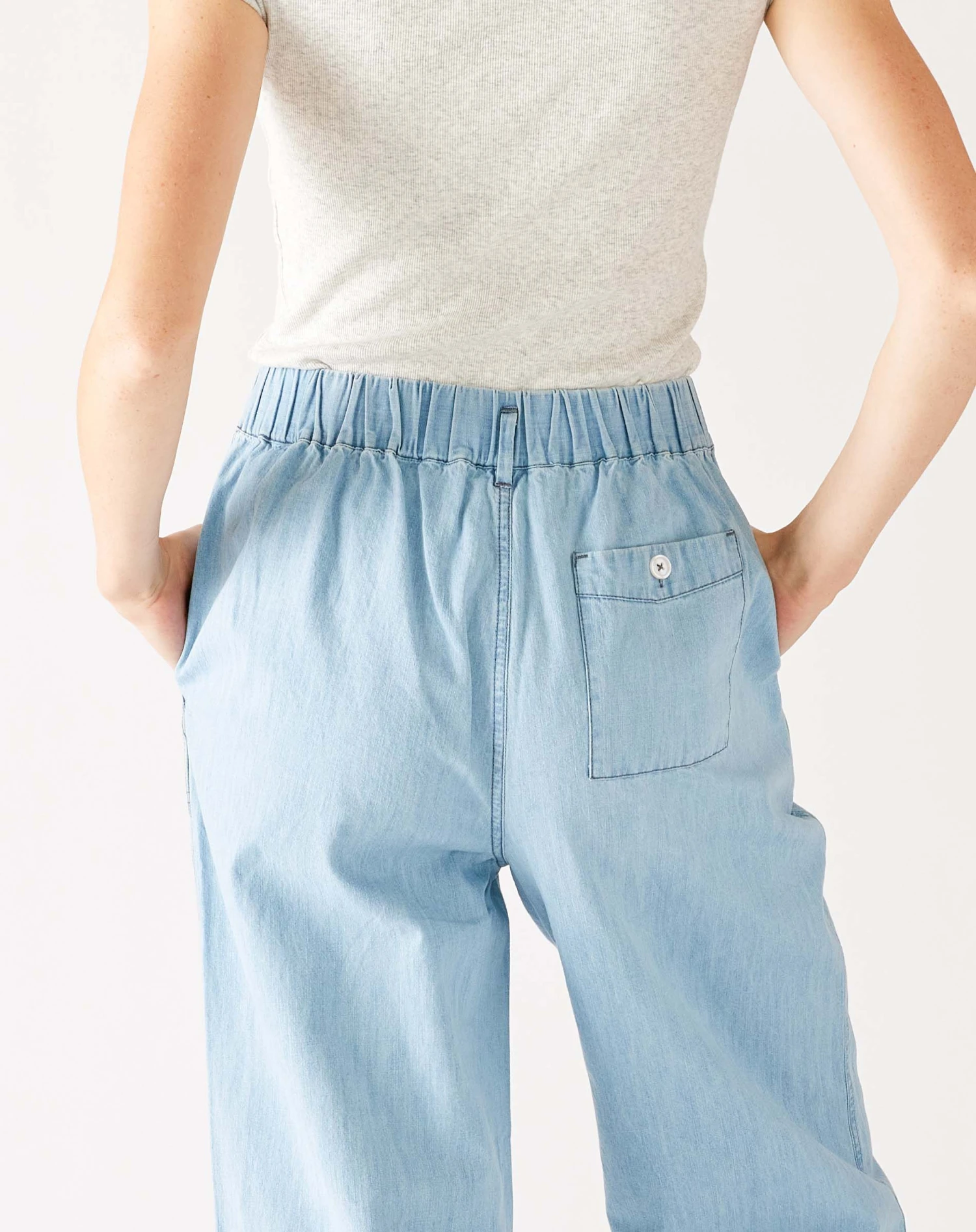 There is an irrepressible tomboy in all of us. Our Sammie Chambray women’s pants have sophisticated wide legs in the soft jean-like material, chambray, ensuring that you will always feel chic and comfortable. With a pull-on waistband for that always-perfect-fit, a deep bottom hem and back-patch pocket … people will notice the details.